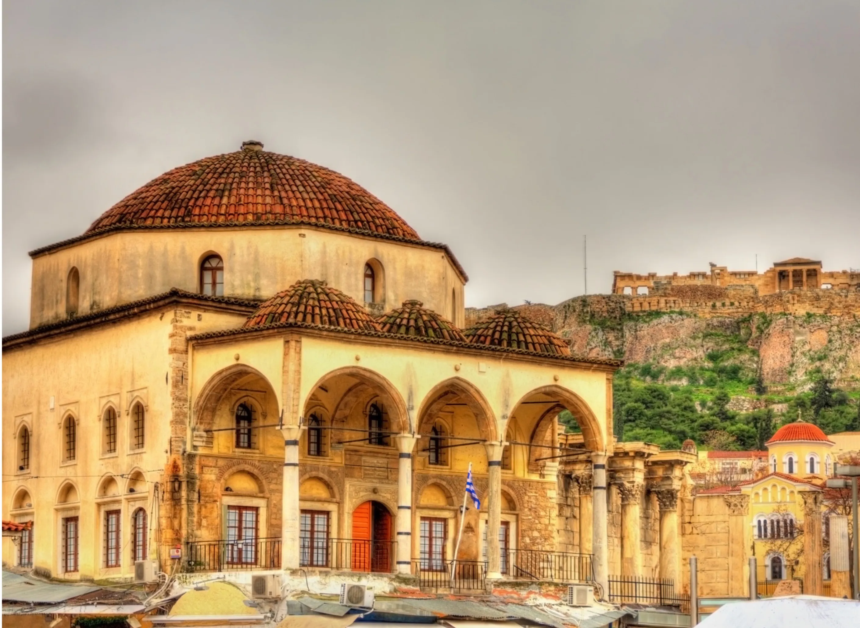 After breakfast, start a new discovery panoramic tour of Athens with a photo stop at Parliament for the changing of the Guards, and the Athens Trilogy including the University of Athens, the Academy of Athens, and the National Library. Visit the ancient Monastiraki Mosque, the Al Fatih Mosque, and the Historical Quran Madrasa of Athens, all dated around 1458 and built by Sultan Muhammad II Al Fatih after the conquest of Constantinople. After a halal lunch, return to the hotel for prayers and refreshment, then continue to the old historical Monastiraki and Plaka area, the old Islamic city full of bazaars, artisanal shops, and cafes, with three hours of free time. Conclude with a unique halal dinner arrangement at the main gate of the Al Fatih Mosque. Overnight in Athens.