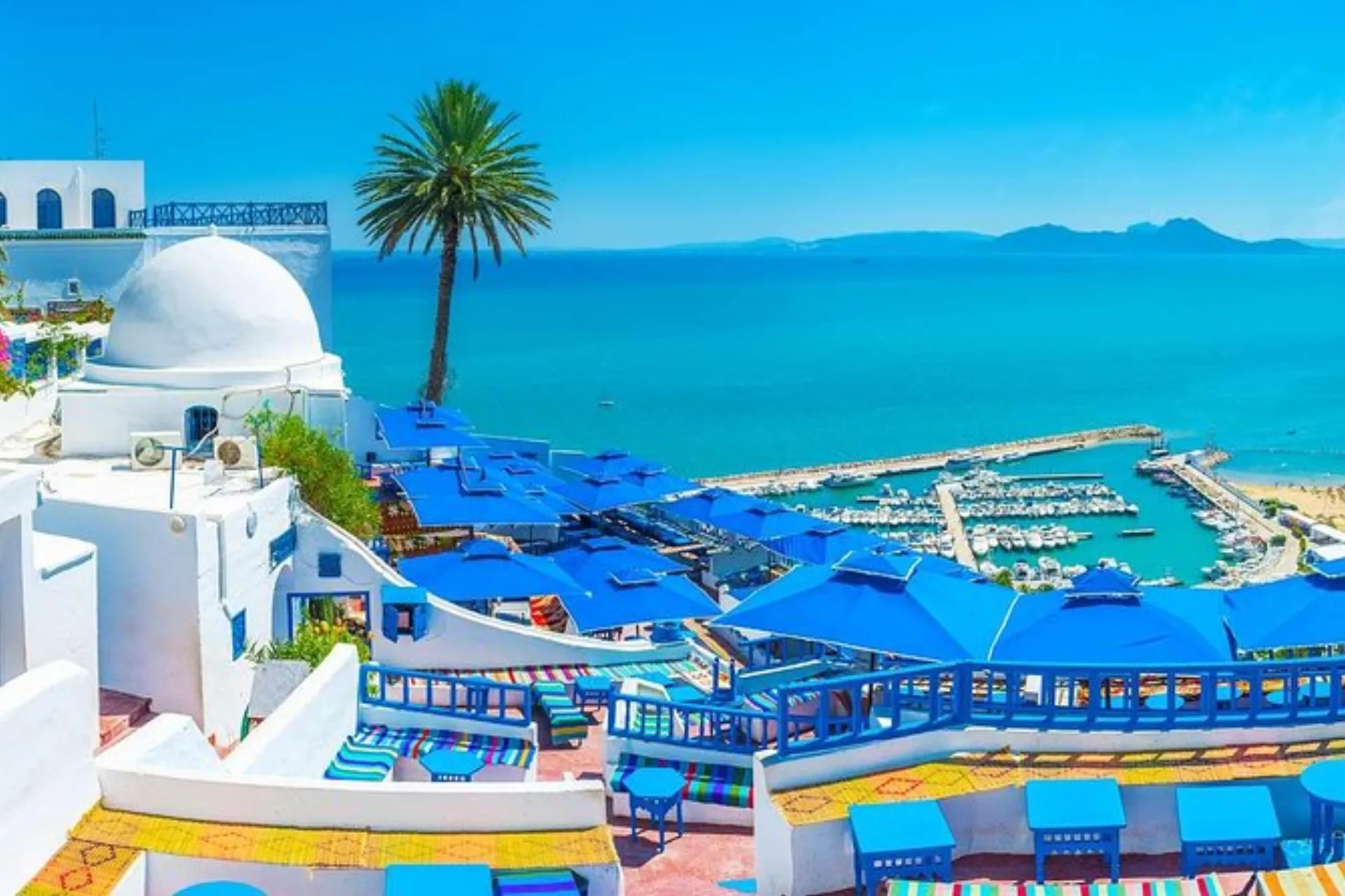 Arrival meet and assist at the airport of Tunis. Panoramic tour of the surroundings of this beautiful coastal city and capital of Tunisia. Visit to the emblematic village of Sidi Bou Said and its Mausoleum. The Mausoleum of Sidi Abu Said is a spiritual and historical sanctuary dedicated to the revered Sufi scholar and saint, Abu Said ibn Khalef ibn Yahia al-Tamimi al-Baji, commonly known as Sidi Bou Said. He was an Arab Muslim Sufi scholar and spiritual master who studied the Quran and Islamic sciences, traveled to spiritual centers in the Middle East, and became a respected teacher and model of piety and devotion in Tunisia. After his death in 1231, Sidi Bou Said was buried in the village that later took his name — a hilltop town overlooking the Gulf of Tunis. A sanctuary and mausoleum (zaouia) was built in his honor; it became a center for spiritual gatherings, Quranic recitation, mystical study, and Sufi dhikr. Overnight in Tunis.