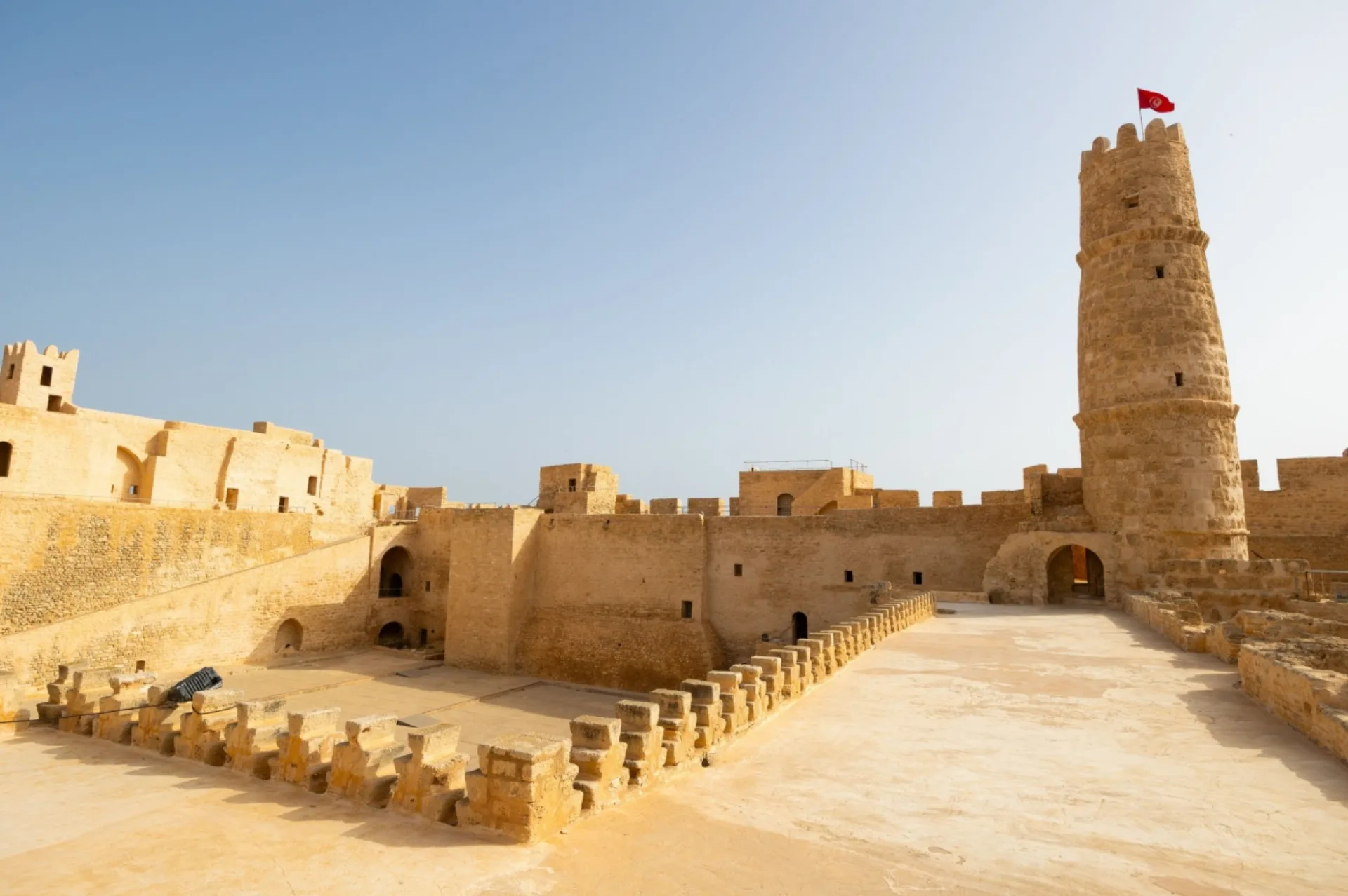 Depart from Mahdia and travel north along the Mediterranean coast toward Monastir, a city where faith, history, and the sea meet. Visit the Ribat of Monastir, one of the oldest and most impressive ribats in the Islamic world. This fortress-monastery on the seafront once served as a place of defense and as a spiritual retreat for worshippers and scholars. Continue to Sousse, one of the great Islamic cities of Ifriqiya and a UNESCO World Heritage site. Visit the Bou Ftata Mosque, one of the oldest mosques in Tunisia, and the Great Mosque of Sousse, a majestic fortress-like mosque reflecting the dual role of worship and protection in early Islamic coastal cities. Visit the Ribat of Sousse and walk through the medina of Sousse, rich with life, markets, and traditional streets. Dinner and accommodation in Sousse.